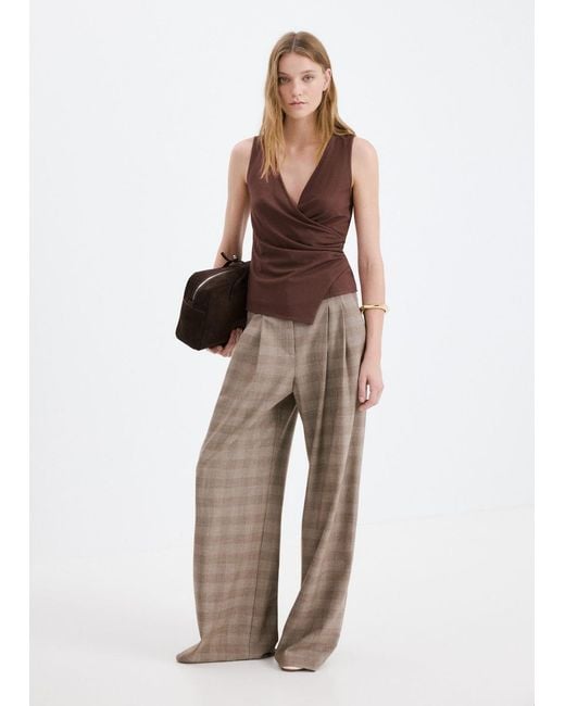 Straight design, V-neck, Sleeveless, Wide straps, Crossed style, Asymmetric hem, No Fastening Colour: brown