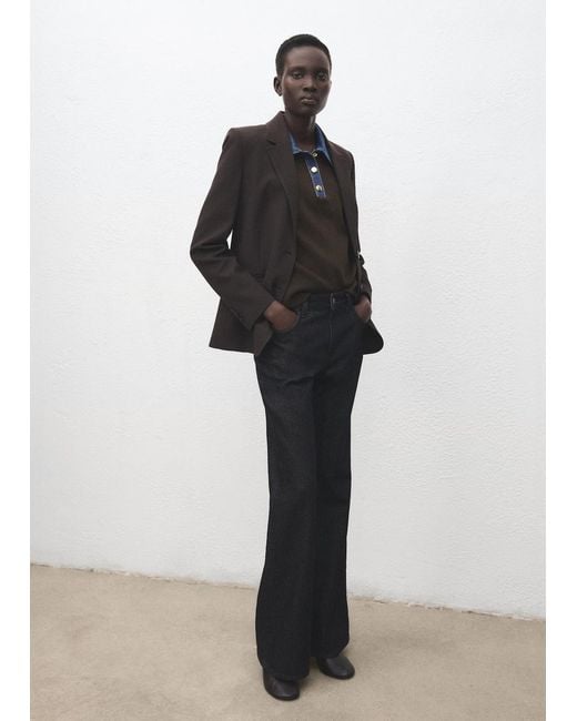 Fine-knit fabric, Straight design, Combined style, Polo collar, Combined collar, Cotton fabric collar in cowboy denim style, Long sleeves, Front closure with buttons, Available Plus Colour: black