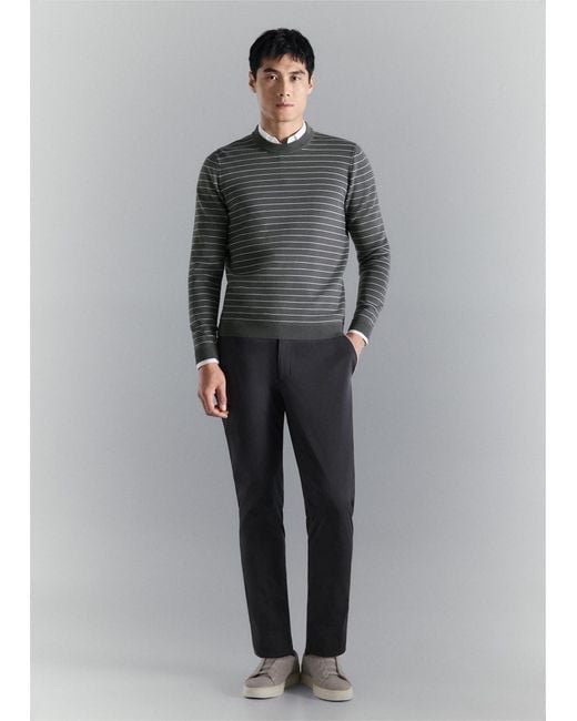 Performance Collection, Comfort Stretch: Stretch fabric for added comfort, Stripe design, Ribbed neck, cuffs and hem, PERFORMANCE: A collection of garments crafted from technical fibres. This selection offers a wide range of advanced features such as bi-stretch fabrics, quick-drying, easy ironing, thermoregulating, breathable or water-repellent properties, organised into three general categories: Thermoregulating, Functional and Comfort. Colour: grey