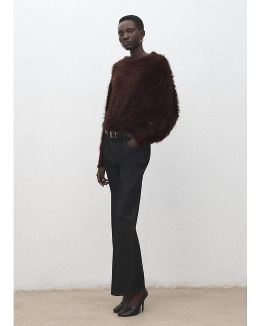 Chunky knit fabric, Faux fur effect, Straight design, Round neck, Long sleeves, No Fastening Colour: brown