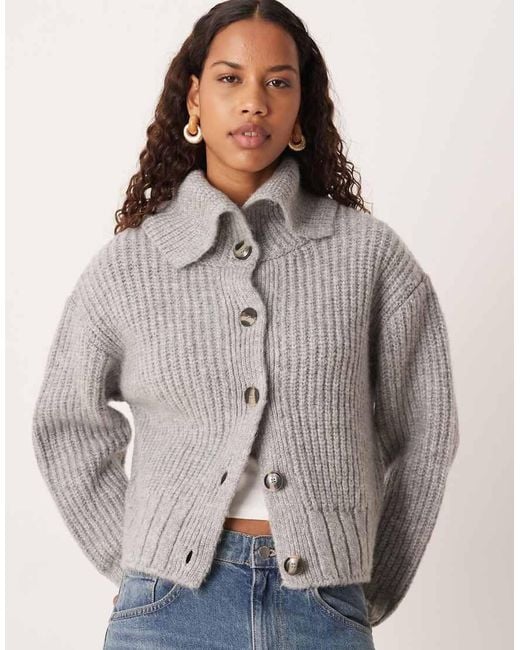 Women's Grey Oversized Collar Cardigan
