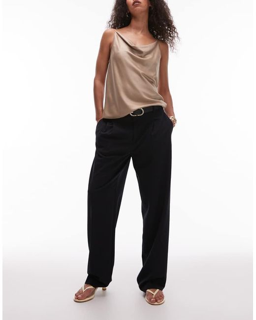 Trousers & Leggings by Mango High rise Belt loops Functional pockets Pleat details Straight fit. Polyester/Cotton/Polyester/Viscose/Elastane. Colour: black