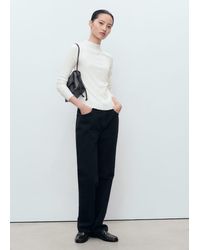 Go to MangoRibbed knit, Fitted design, High collar, Long sleeves, Stitching detail, Scalloped edges, No Fastening Colour: white
