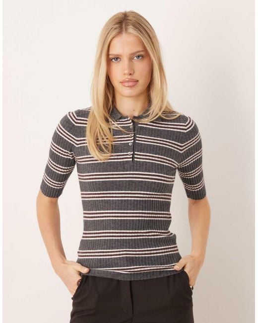 Tops by Mango Stripe design Polo collar Partial button placket Short sleeves Regular fit. Viscose/Polyester/Wool/Polyamide. Colour: grey