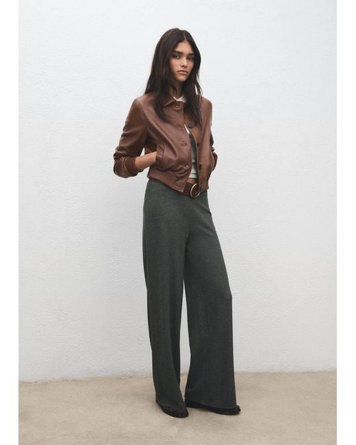 Women's Grey Straight-Fit Trousers With Elastic Waist