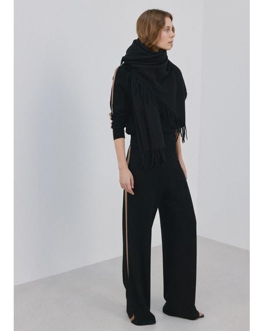 Women's Black Jumper With Contrasting Stripes And Perkins Collar