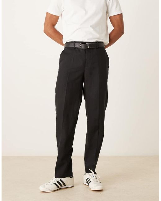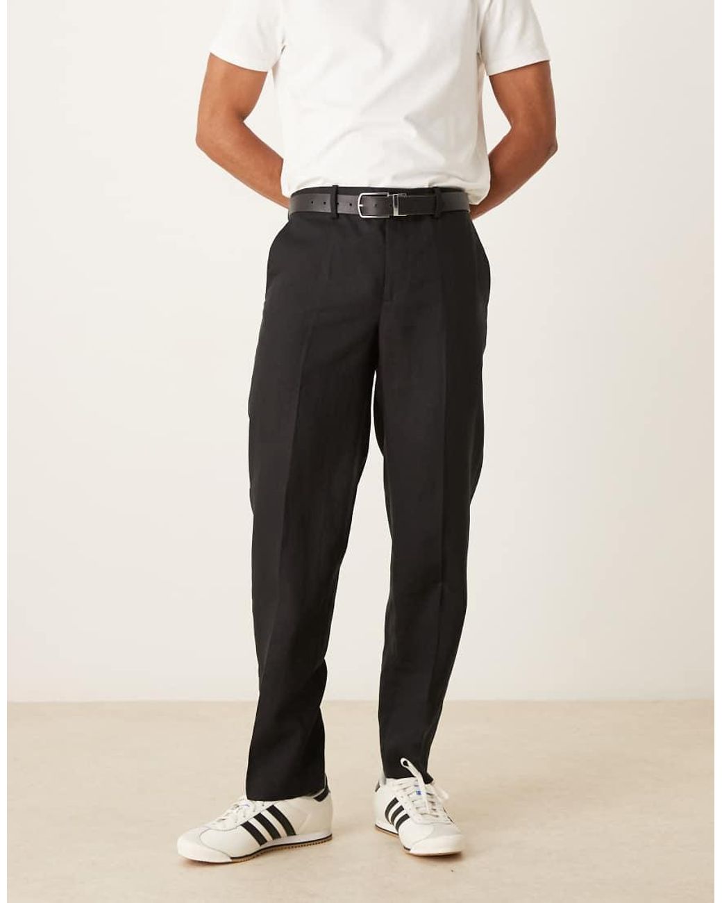 Trousers & Chinos by Mango Regular rise Belted waist Side and back pockets Belt loops Tapered fit Colour: black