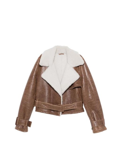 Belted Leather Jacket - Brown