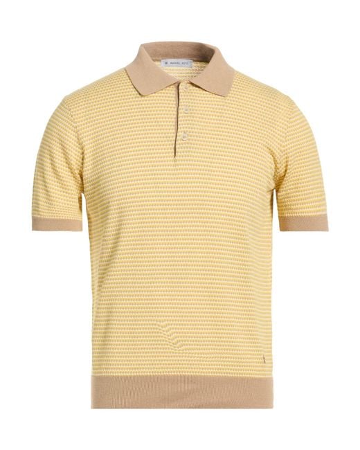 MANUEL RITZ. knitted, lightweight knit, embroidered logo, mélange, buttoned neckline, short sleeves, machine wash or dry clean, do not bleach, do not tumble dry. 100% Cotton. Colour: yellow