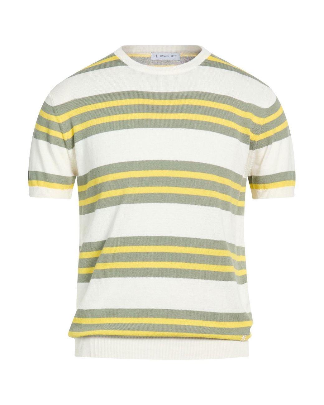 MANUEL RITZ. intarsia-knit, lightweight knit, embroidered logo, striped, crewneck, short sleeves, machine wash or dry clean, do not bleach, do not tumble dry. 100% Cotton.