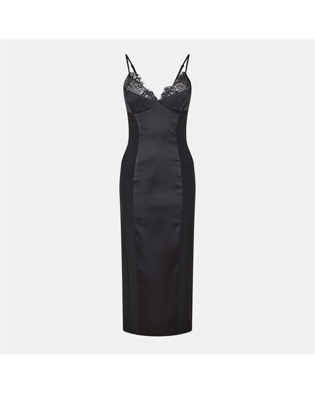 Carmen Lace Corset Midi Long Sleeve Bodycon Dress - Black
