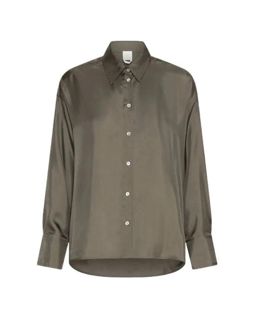Brown front button fastening classic collar long sleeves buttoned cuffs curved hem Size: 42. Gender: Female. Material:Silk. Colour: grey