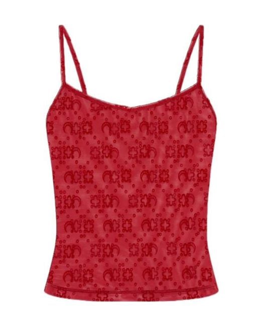 Women's Red Moonogram Mesh Straps Top