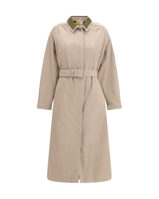 The gabardine trench by marni delivers a modern expression of elegance through refined construction and technical materials. crafted from cotton and nylon gabardine with a soft yet crisp hand, it features a water-repellent finish and contrasting topstitching that enhance its graphic character. a contrasting collar and diagonal pockets enrich the design, while covered button closure and a waist belt with buckle define the silhouette. a leather patch with embossed marni logo on the back adds a distinctive touch, completed by a fully lined construction for comfort and sophistication. Composition: 68% % Cotton, 32% % Polyamide, 100% % Viscose