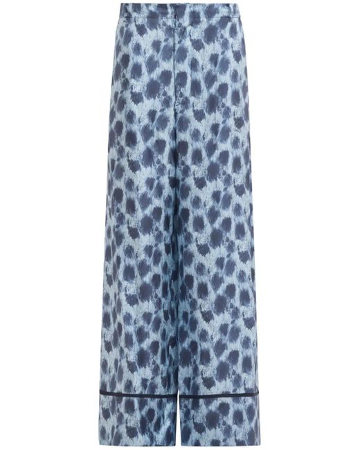 Dillies-Motif Wide-Leg Silk Pyjama Trousers - Blue