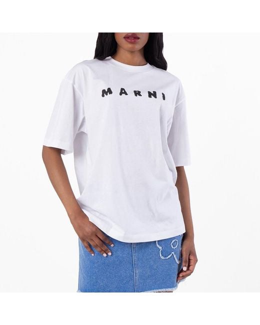 Women's White Scribbled Logo Jersey Cotton T-Shirt, Brand Size 42 Us