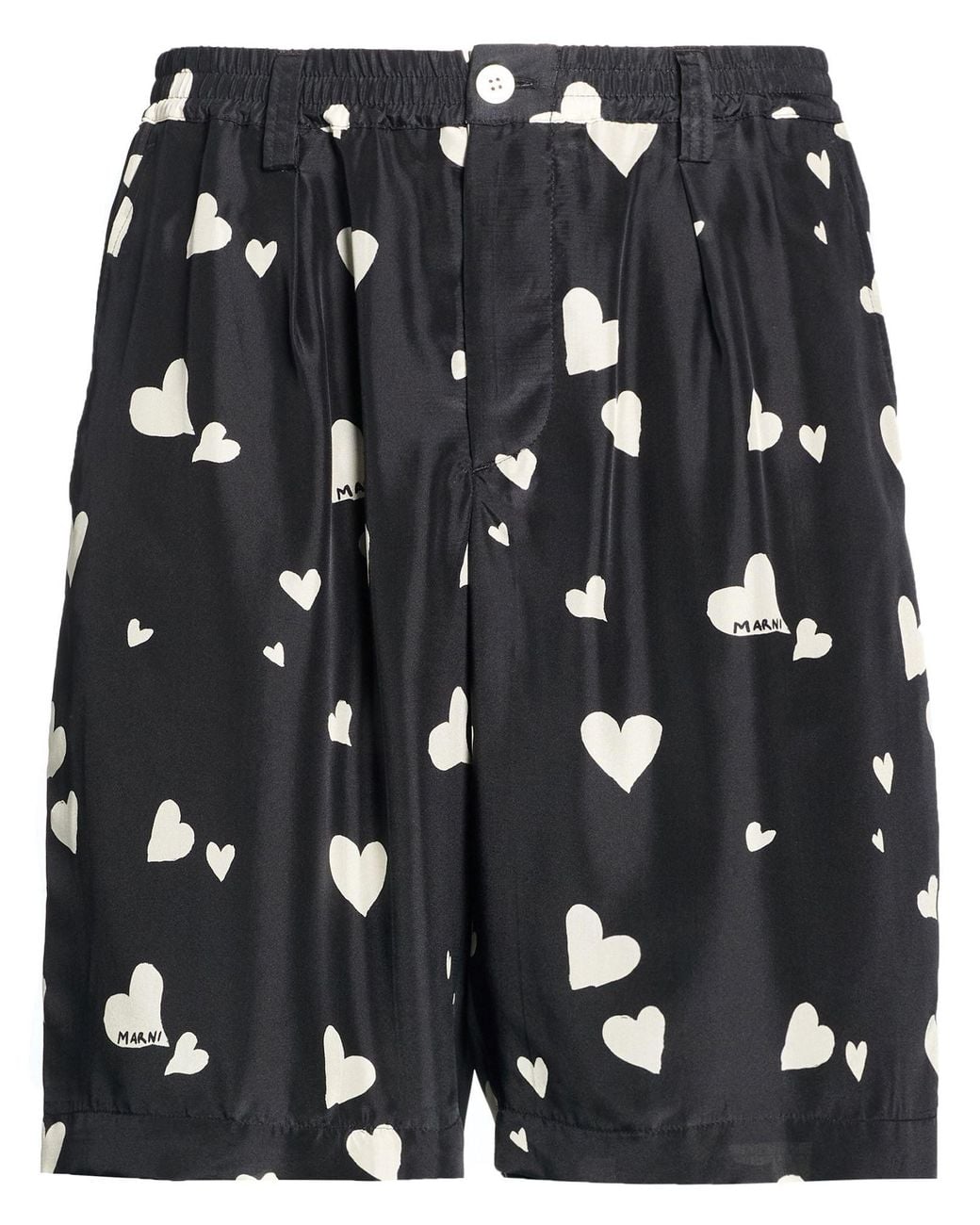 MARNI. casual shorts, satin, two-tone, brand logo, high waisted, belt loops, regular fit, button fastenings, slit pockets, bellows pockets, dry clean, do not bleach, do not tumble dry, contains non-textile parts of animal origin, this brand runs large. 100% Silk. Colour: black