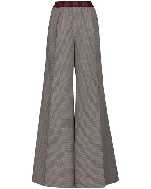 Women's Grey Tailored Wide-Leg Flare Trousers With Houndstooth Pattern