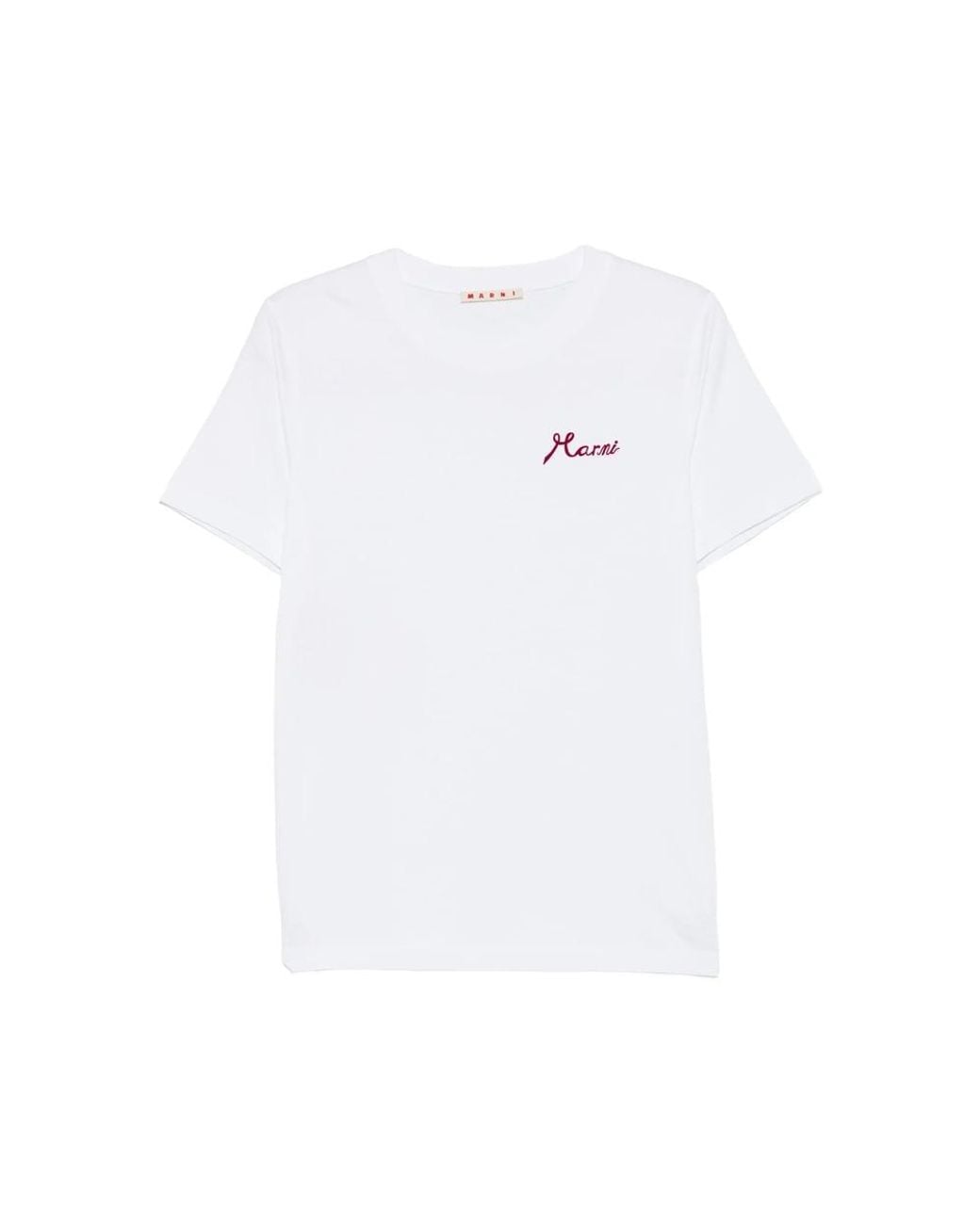 T-Shirt En Coton À Logo Sur La Poitrine - White