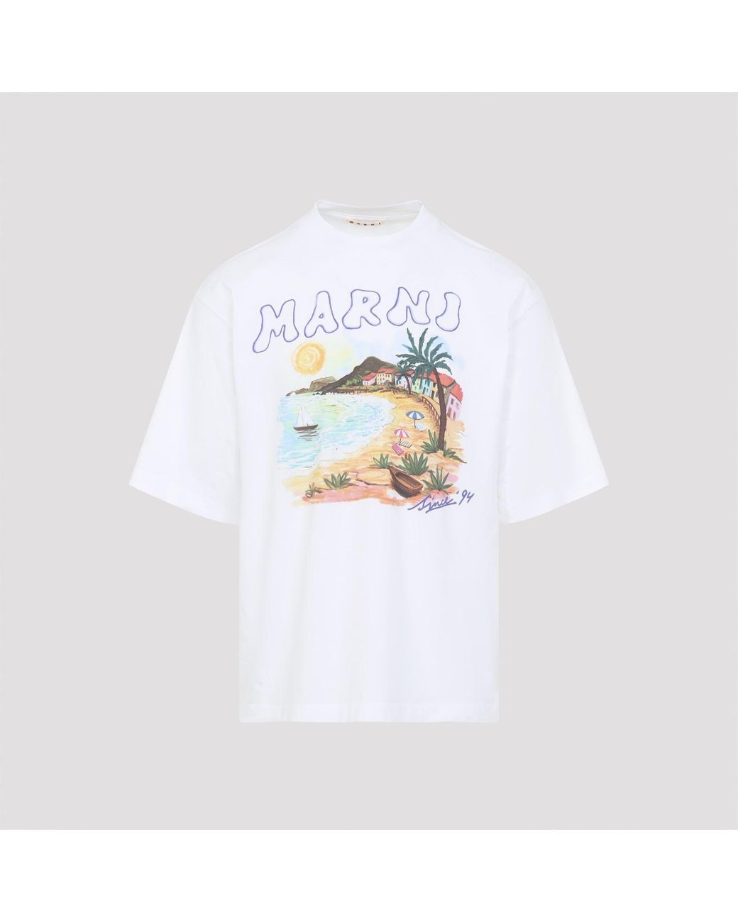 Marni Lily White Cotton T-Shirt. Pure white cotton t-shirt, round neck, front multicolor logo design, short sleeves, straight hem. Size: 46, 48, 52