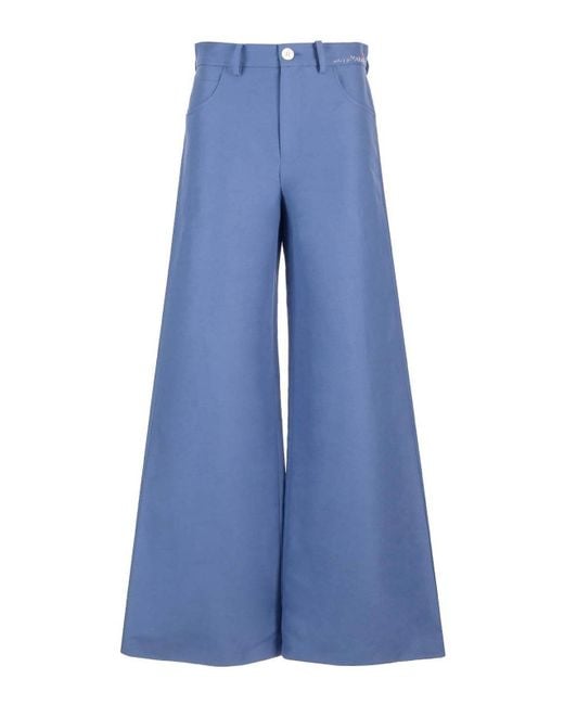 5-pocket wide-leg trousers from marni, in opal blue cotton drill, with high waist and strap with embroidered marni signature, front and back pockets, front zip and button. standard fit. Colour: blue