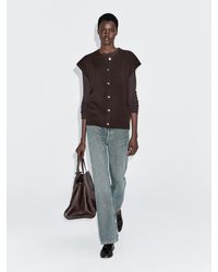 MASSIMO DUTTI Women's Brown Knit Waistcoat Top With Buttoned Strap