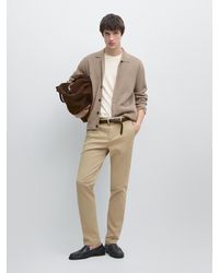 Go to Massimo DuttiTwo side pockets. Two welt pockets on the back. Slim fit trousers: this fit has a slightly tailored silhouette, tight at the waist and legs. Concealed zip fastening with flap, button and inside button. Lightweight fabric with texture Colour: white
