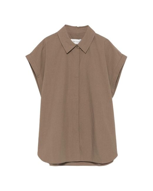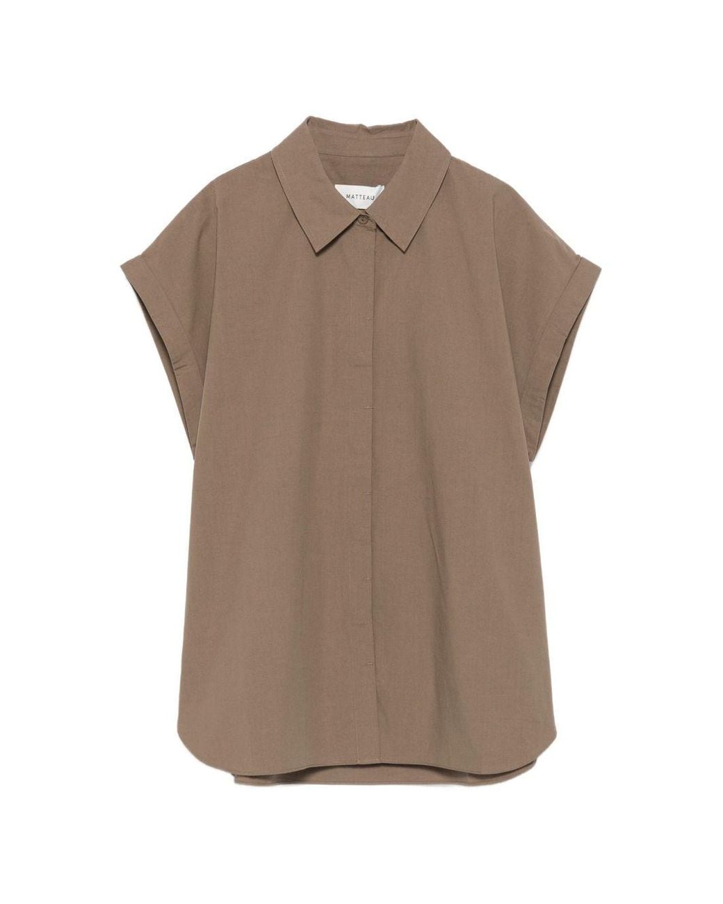 Brown classic collar concealed front button fastening cap sleeves box pleat to the rear curved hem Colour: brown