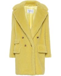 Max Mara's signature teddy coat gets a brand new boost with the 'Adenia'. The classic retains its oversized silhouette and double-breasted front. Crafted in a bold new neon alpaca-blend, we recommend aking a statement and go full monochrome with a mini skirt,. As seen on the Fall '19 runway. Slit pockets, fully lined. Button fastenings through front. Composition: 62% alpaca, 26% virgin wool, 12% silk. Dry clean. Made in Italy.