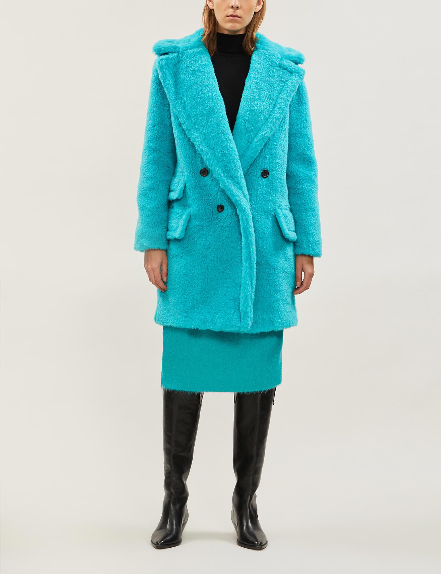 Italian label Max Mara is renowned for its superior outerwear – specifically coats of the camel variety – and we don't see that changing anytime soon, but for AW19 the label opted for a much brighter hue for the Adenia coat. Spun from a plush blend of alpaca, wool and silk to form the teddybear texture, it's cut with a double breasted silhouette with oversized lapels and falls to a thigh skimming hemline. If you're feeling brave, team with an all turquoise ensemble as it was seen on the runway. Max Mara alpaca and wool blend coatExposed button fastenings at frontNotch lapel collar, double breasted, regular fit, long sleeves, all over teddy texture, three flap pockets at front, fully lined62% alpaca, 26% virgin wool, 12% silk; lining 100% viscoseDry cleanTrue to sizeSize 8: length 36in/92cmModel is 5ft 10in/ 1.78m and wears a size 8Made in Italy. Colour: blue