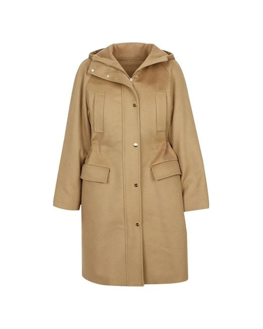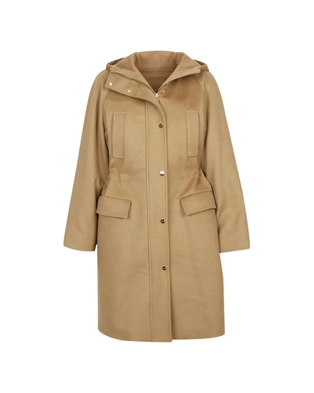 Brown hood front flap pockets front button fastening drawstring waist Size: 42. Gender: Female. Material:Virgin Wool/Polyamide. Colour: natural