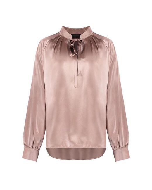 Max Mara Tamigi Silk blouse with bow presents a refined tie-neck blouse in luxurious silk, designed for polished daytime and evening styling. Key attributes: Pink | Silk | Buttoned cuffs | Tie neck ribbon | Hemline with side slits | Composition & care: 100% Silk Colour: pink