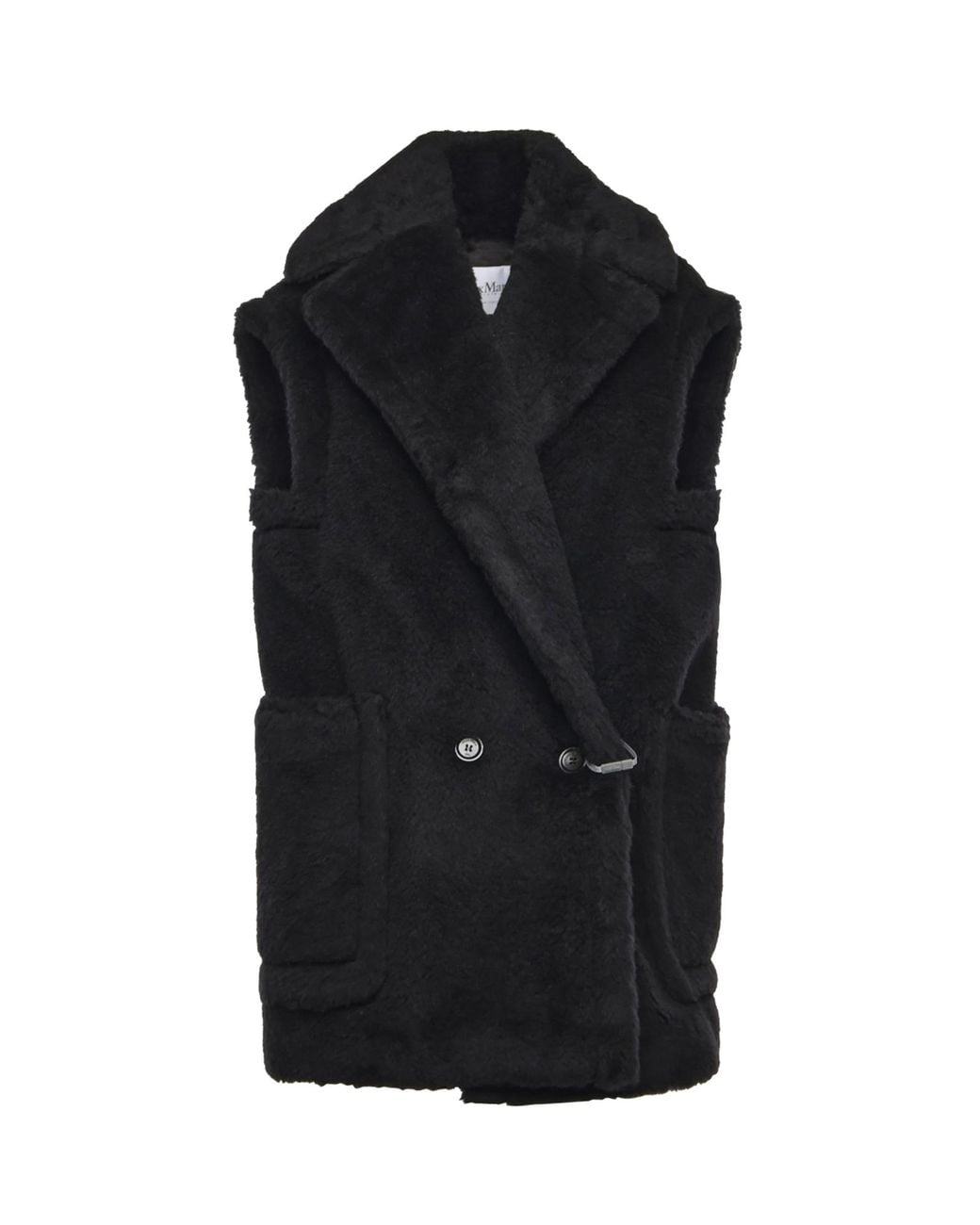 - Made of alpaca and wool teddy on a silk base - Front button closure - Front patch pockets - Lapel collar - Size shown in photo is 36 - Colour Black. . Composition 62 alpaca, 26 virgin wool, 12 silk Colour: black