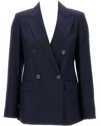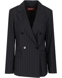 Max Mara Women's Blue Double-Breasted Pinstriped Jacket