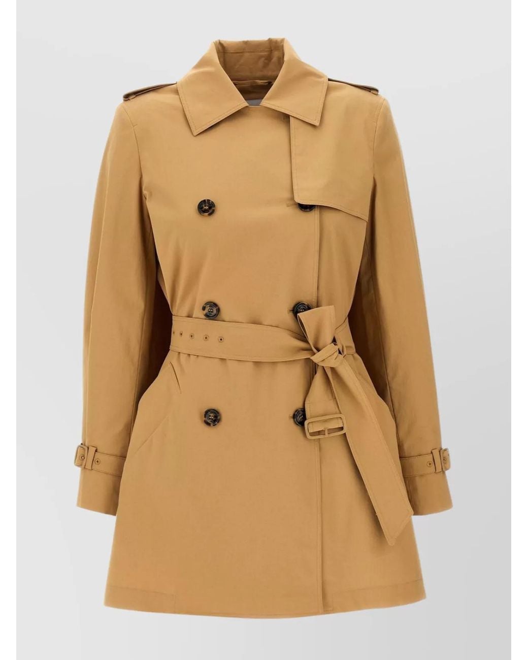 Belted waist | Double-breasted design | Epaulettes | Buttoned cuffs | Side pockets Colour: natural