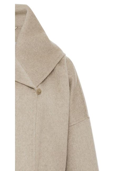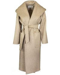 Max Mara's 'Marilyn' coat is constructed from cashmere with an exaggerated lapel. Designed in an oatmeal hue, this piece is cinched at the waist with a self-tie belt and finished with dual front patch pockets. Complement its midi-length hem by styling yours with leather mules. Ties at front. Composition: 100% cashmere. Dry clean. Made in Italy. Colour: multicolour