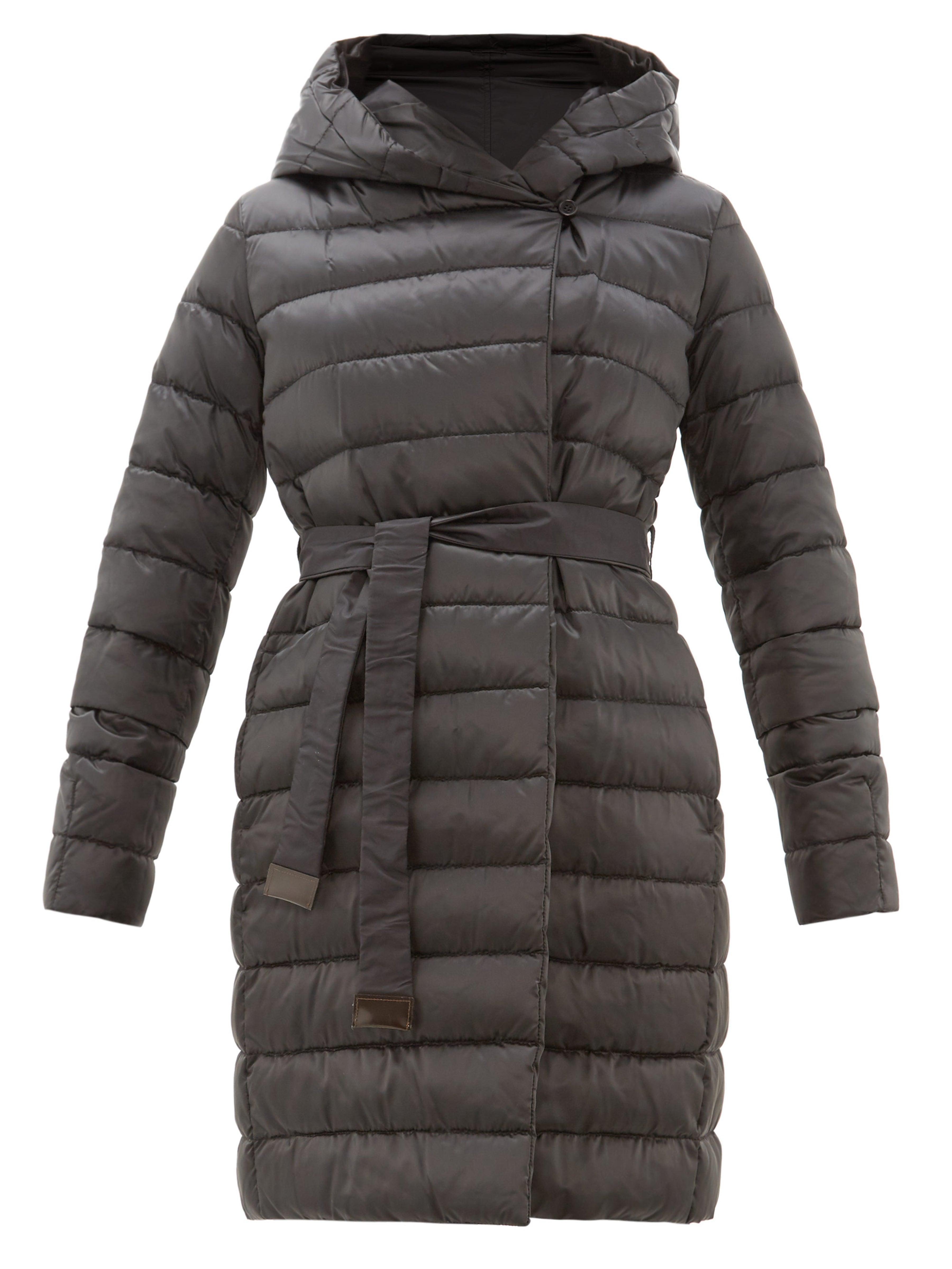 S max mara - an all-weather saviour, s max mara's the cube series presents this black reversible jacket, complete with a coordinating pouch in which the jacket can be stored. It's filled with pure siberian goose down and feathers for warmth and is water repellent on both the quilted and matte sides. Cinch this jacket with the coordinating belt and add hard-wearing boots to face the elements. 57%polyamide/43%polyester. Colour: black