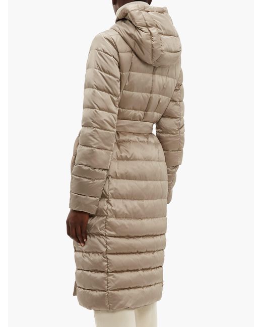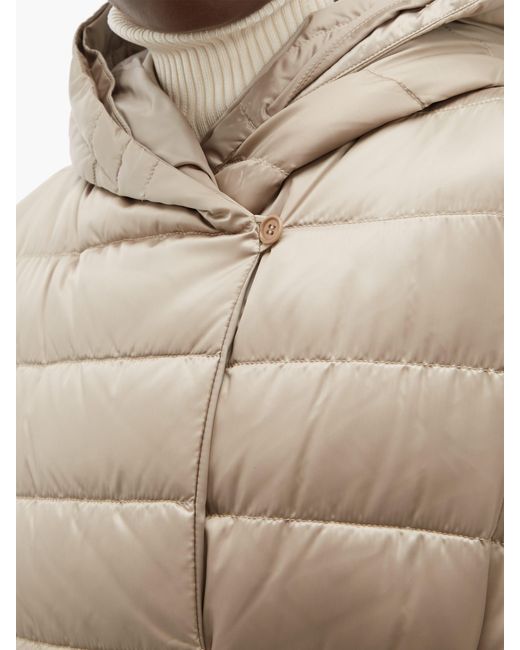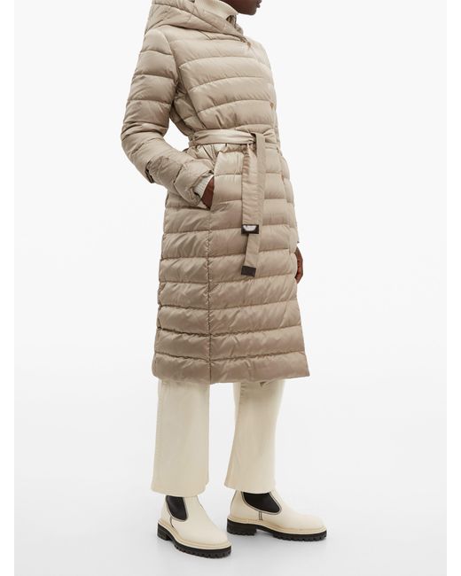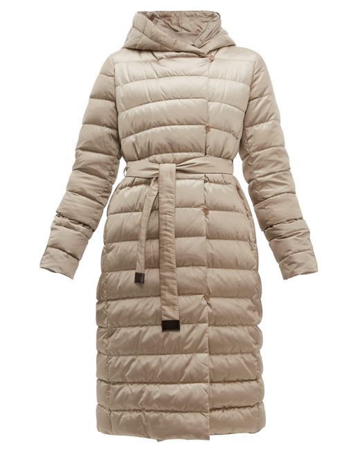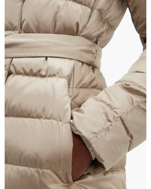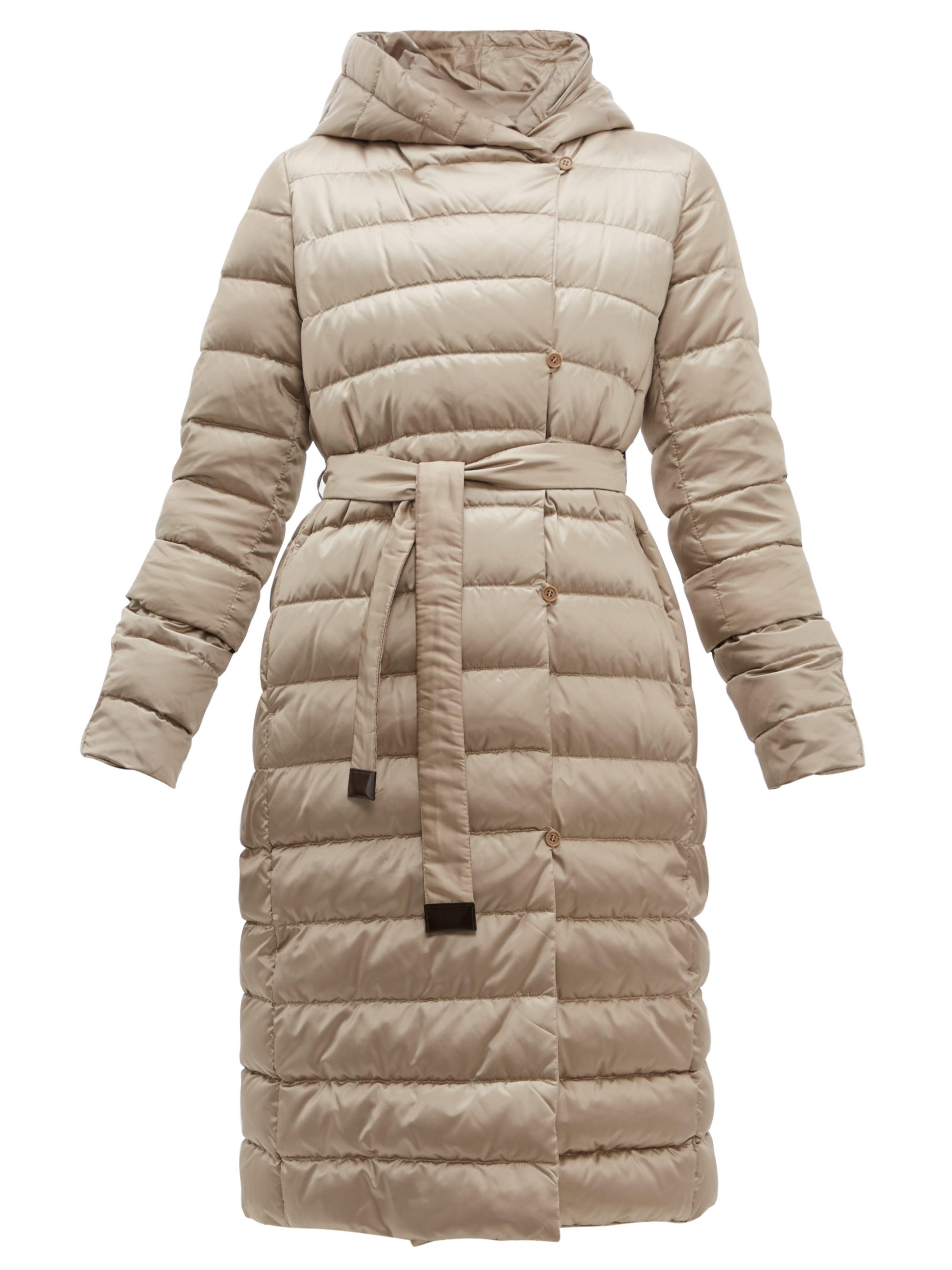 This beige Novef coat is part of S Max Mara's The Cube series, which takes its name from the shape of the coordinating pouch in which it can be stored. It's made from lightweight, quilted shell that resembles satin, then turned inside out to a matte reverse and accompanied by two interchangeable belts. Wear it over neutral separates to highlight the elegant sheen of the material. 90%DOWN, 10%FEATHER. Colour: metallic