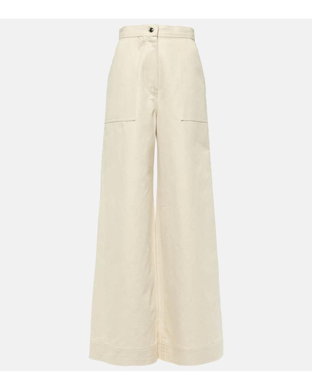 Women's Natural Oboli Cotton And Linen Wide-Leg Trousers
