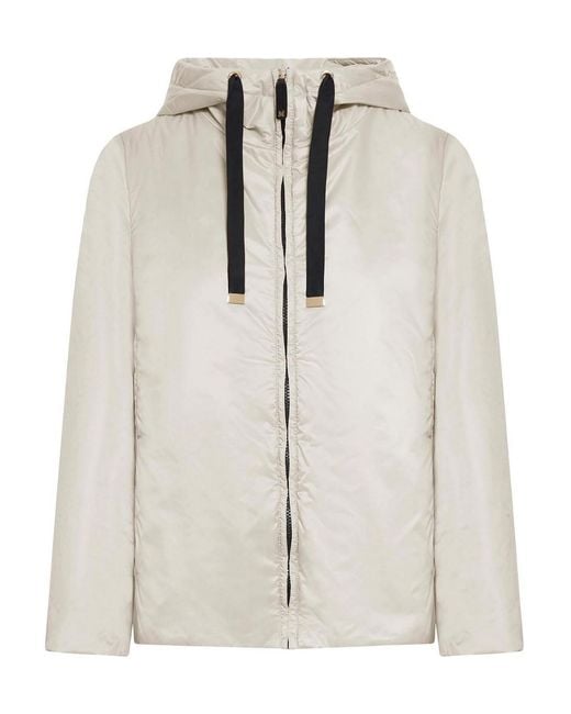 Drawstring hood, long sleeves, cameluxe padding, front zip closure with leather pull, inset side welt pockets, the model is wearing a size 40 (it) and is 180 cm tall, color: beige Colour: white