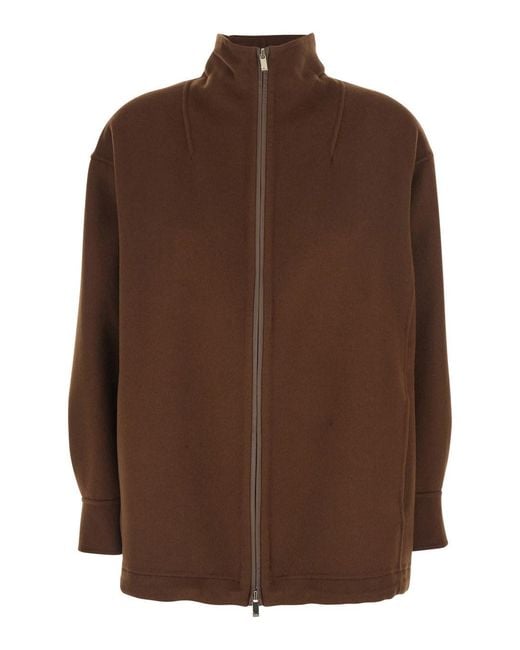 Women's Brown 'Pino' Jacket With High Collar And Zip Closure In