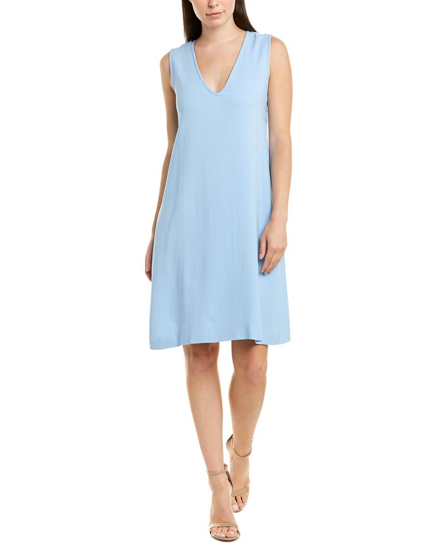 Color/pattern: sky Approximately 37in from shoulder to hem Measurement was taken from a size 4 and may vary slightly by size Model is 5ft 10in Design details: V-neck, dual side on-seam pockets Centre back zipper 64% viscose, 33% acetate, 3% elastane Dry clean only Imported. Colour: blue