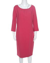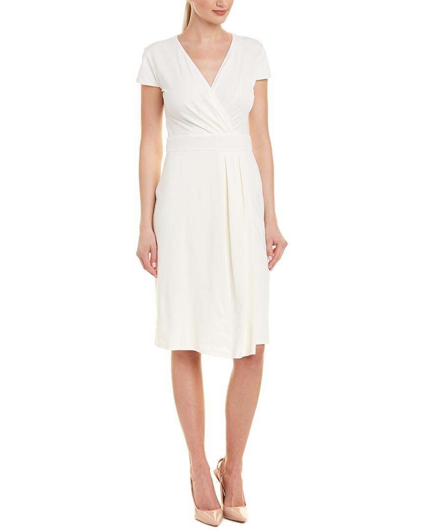 This item tends to run small (based on Member feedback). We recommend sizing up for your best fit. Color/pattern: white. Approximately 41in from shoulder to hem. Measurement was taken from a size 6 and may vary slightly by size. Model is 5ft 10in. Design details: V-neck, pleated waist, layered skirt. Centre back zipper with hook-and-eye closure. Shell: 98% viscose, 2% elastane. Lining: 92% nylon, 8% elastane. Sleeve lining: 95% acetate, 5% elastane. Dry clean only. Colour: white