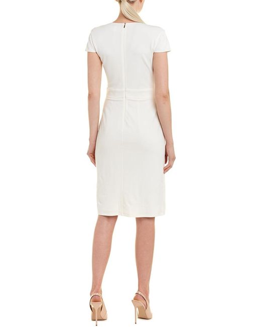 Color/pattern: white Approximately 41in from shoulder to hem Measurement was taken from a size 6 and may vary slightly by size Model is 5ft 10in Design details: V-neck, pleated waist, layered skirt Center back zipper with hook-and-eye closure Shell: 98% viscose, 2% elastane Lining: 92% nylon, 8% elastane Sleeve lining: 95% acetate, 5% elastane Dry clean only Imported.