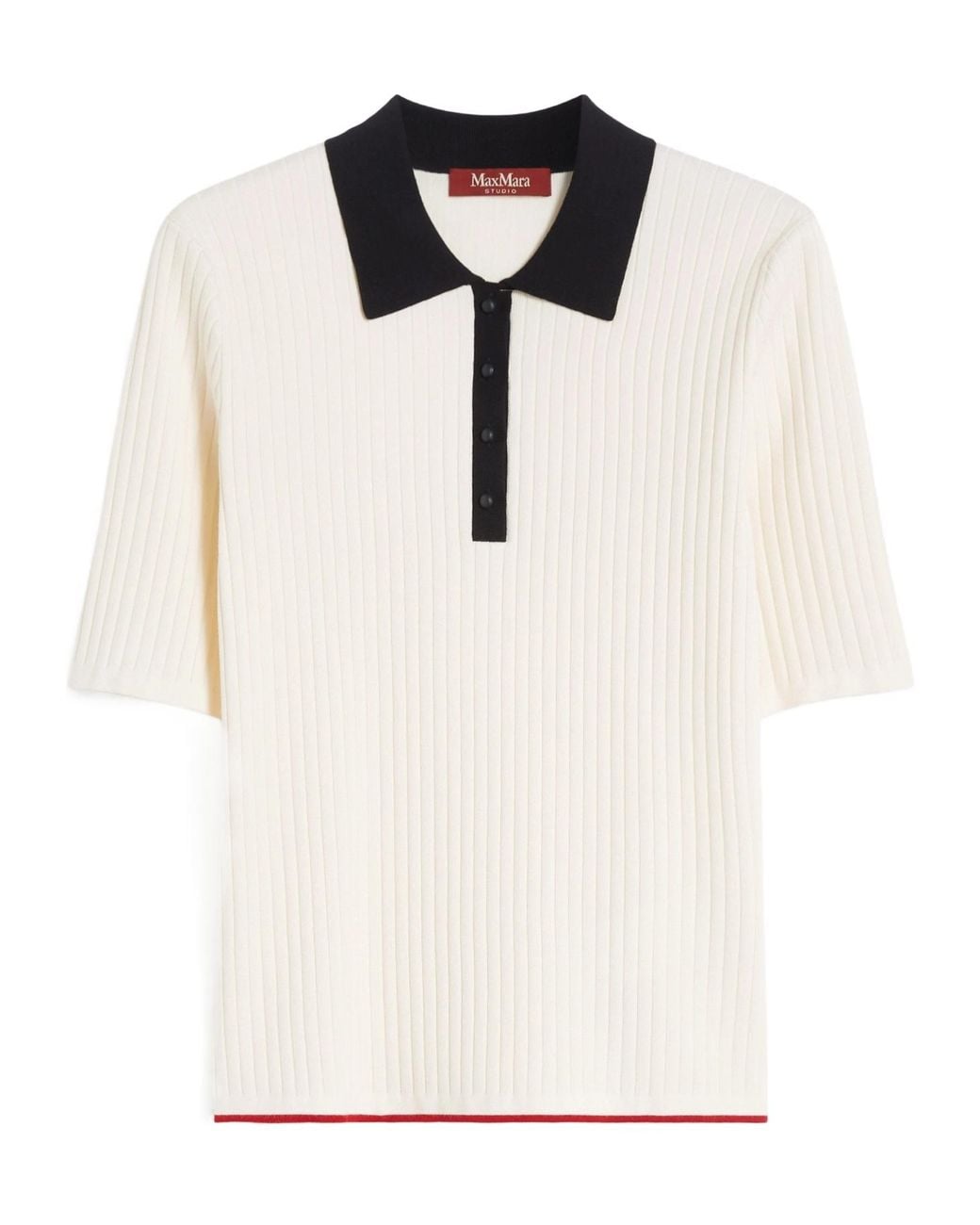 Mxmalbero Ribbed V-Neck Polo Shirt - Natural