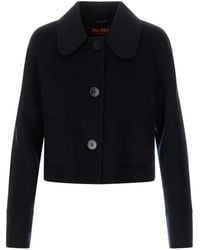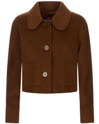Go to FashdesMax Mara single-breasted jacket in brown wool tweed, featuring a slightly fitted silhouette with waist darts, classic lapels, two front patch pockets, long sleeves with buttoned cuffs, front button closure, chest welt pocket,