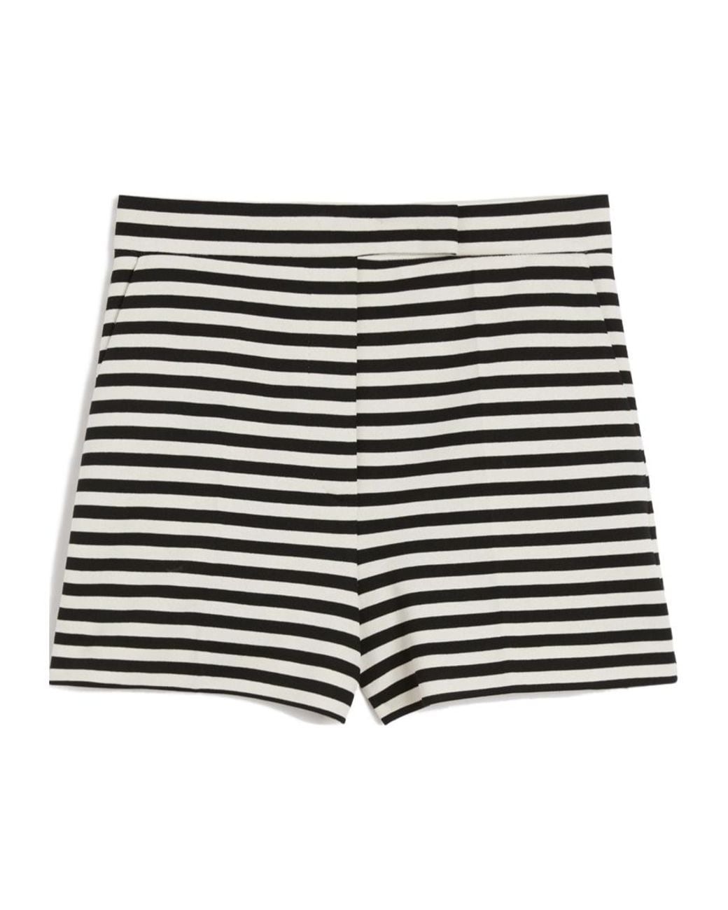 Tailored-style high-waisted shorts Striped viscose jersey shorts High-cut waistband with a fly-covered zip and hook-and-bar fastening Slant side pockets Pressed pleat detail Unlined model Jersey fabric 83 viscose 12 polyamide 5 elastane lining 59 viscose 38 cotton 3 elastane Do not wash do not bleach do not tumble dry cool iron professionally dry clean perchloroethylene - mild process do not wet clean iron with a cloth between Distributed by Max Mara S r l registered office in Reggio Emilia Italy Via Giulia Maramotti 4 42124 IT Colour: black