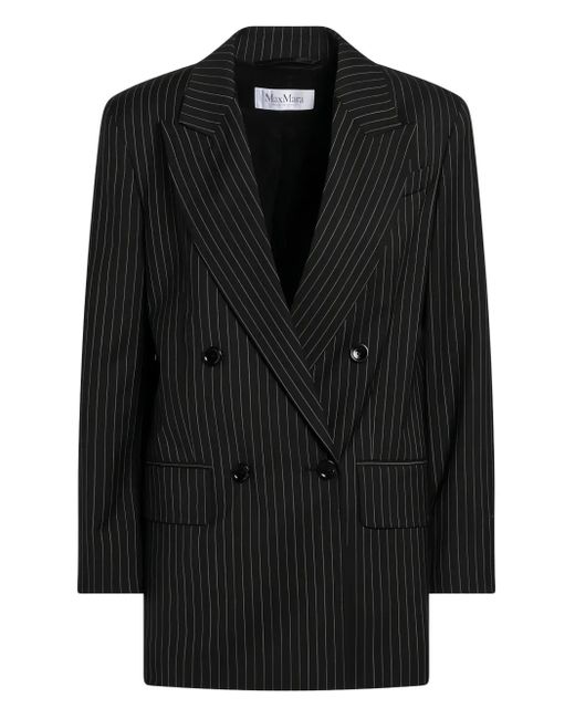 Women's Black Striped-Pattern Double-Breasted Blazer