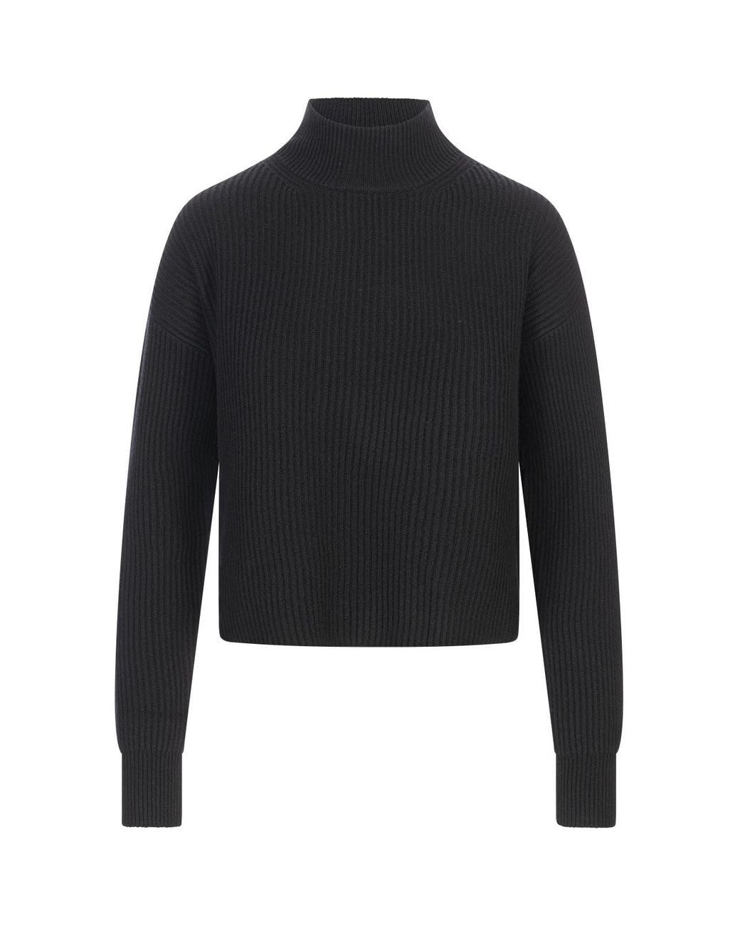 Long sleeves, turtleneck, ribbed knit. Colour: blue