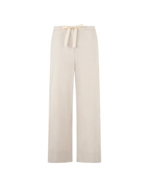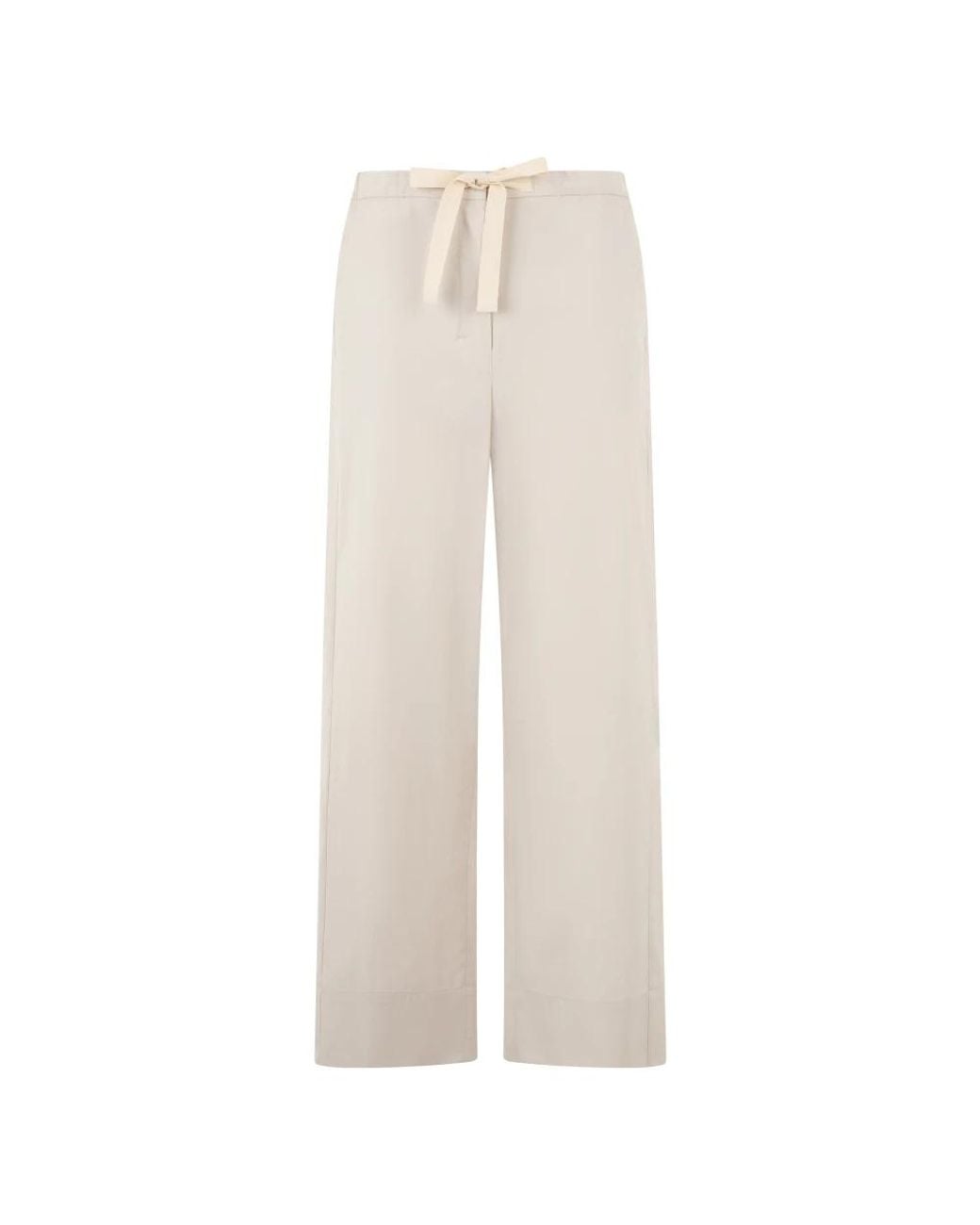 Max Mara Smmargento Wide Trousers are loose-fitting, lightweight cotton trousers designed for comfort and versatile styling. They feature an elastic drawstring waist that balances ease and polish for casual or more elegant outfits. Key attributes: Beige | Cotton | Lightweight fabric | Elastic drawstring waistband | Wide leg | Tie waist detail | Dimensions & fit: Loose fit | Composition & care: 100% Cotton Colour: white